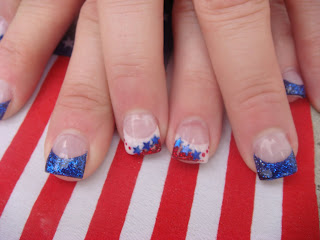 4th of July nails! I'm sure there will be many more patriotic nails to come. Thanks to everyone who looks at my blog. You really keep me motivated. I'll try to keep the pictures and the fun ideas coming! Thanks!